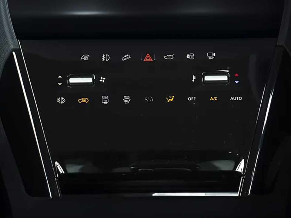 A feature-rich car with modern tech like a large touchscreen, digital cluster, and ventilated seats.